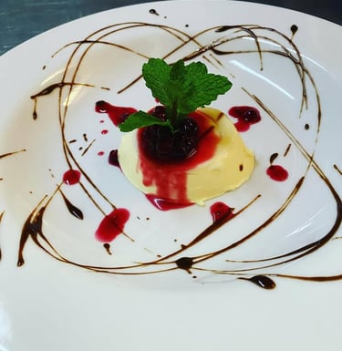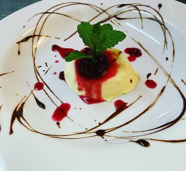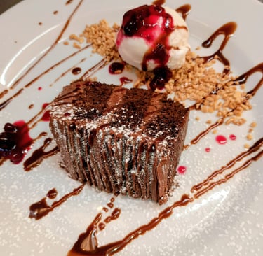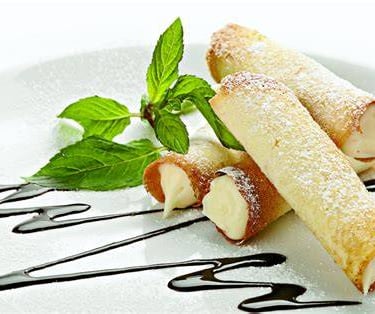 Tres barquillos rellenos de crema chantilly con queso ricotta.